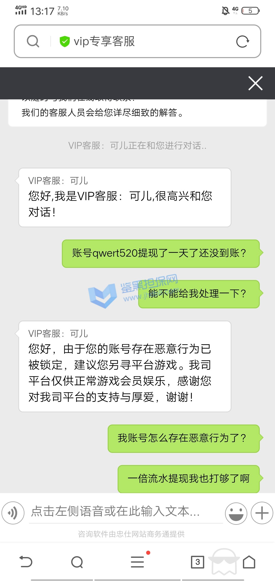 4.用户提交维权需为本人提交,若代替让人发布维权鉴黑担保网将拒绝受理;
