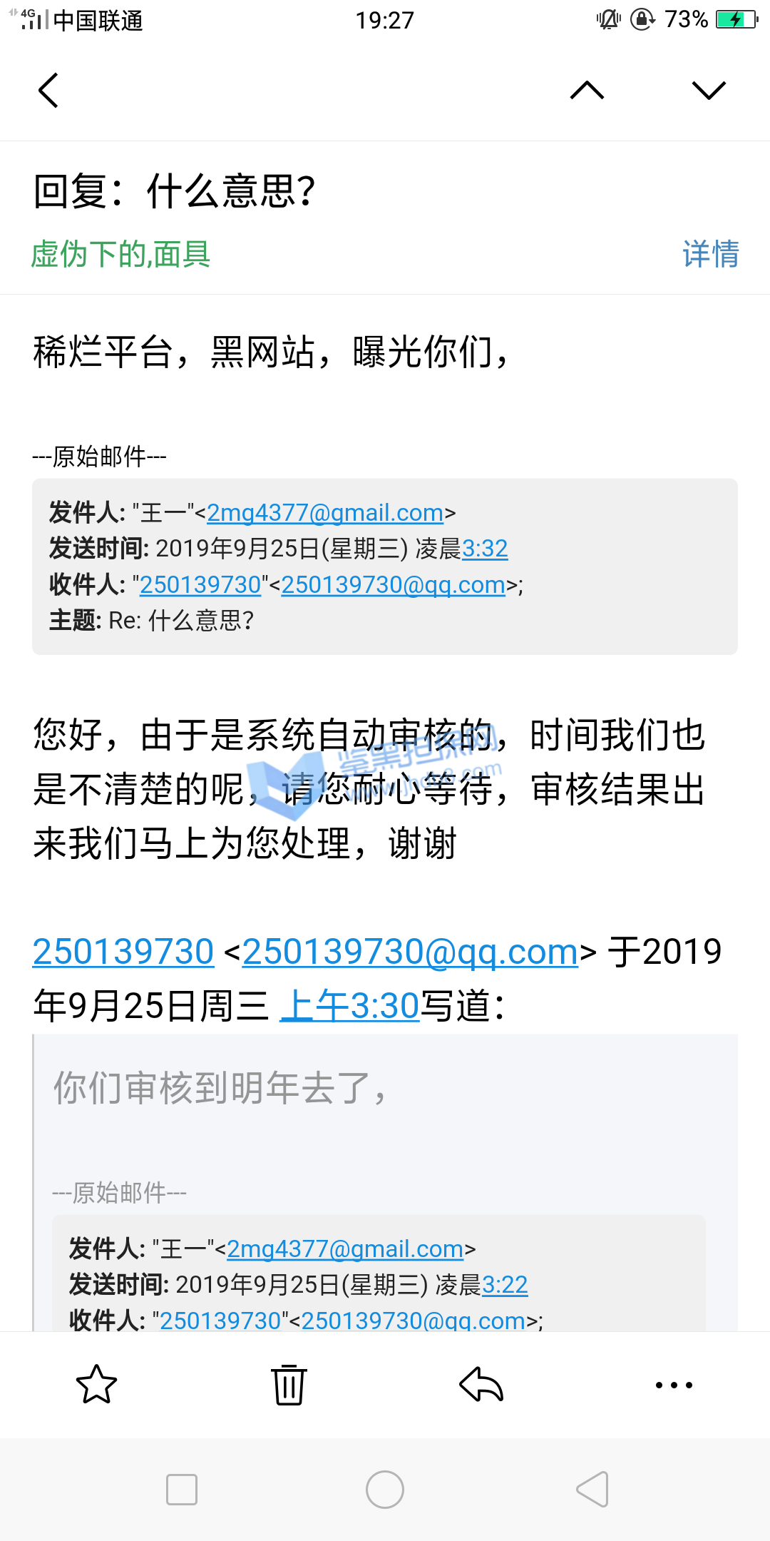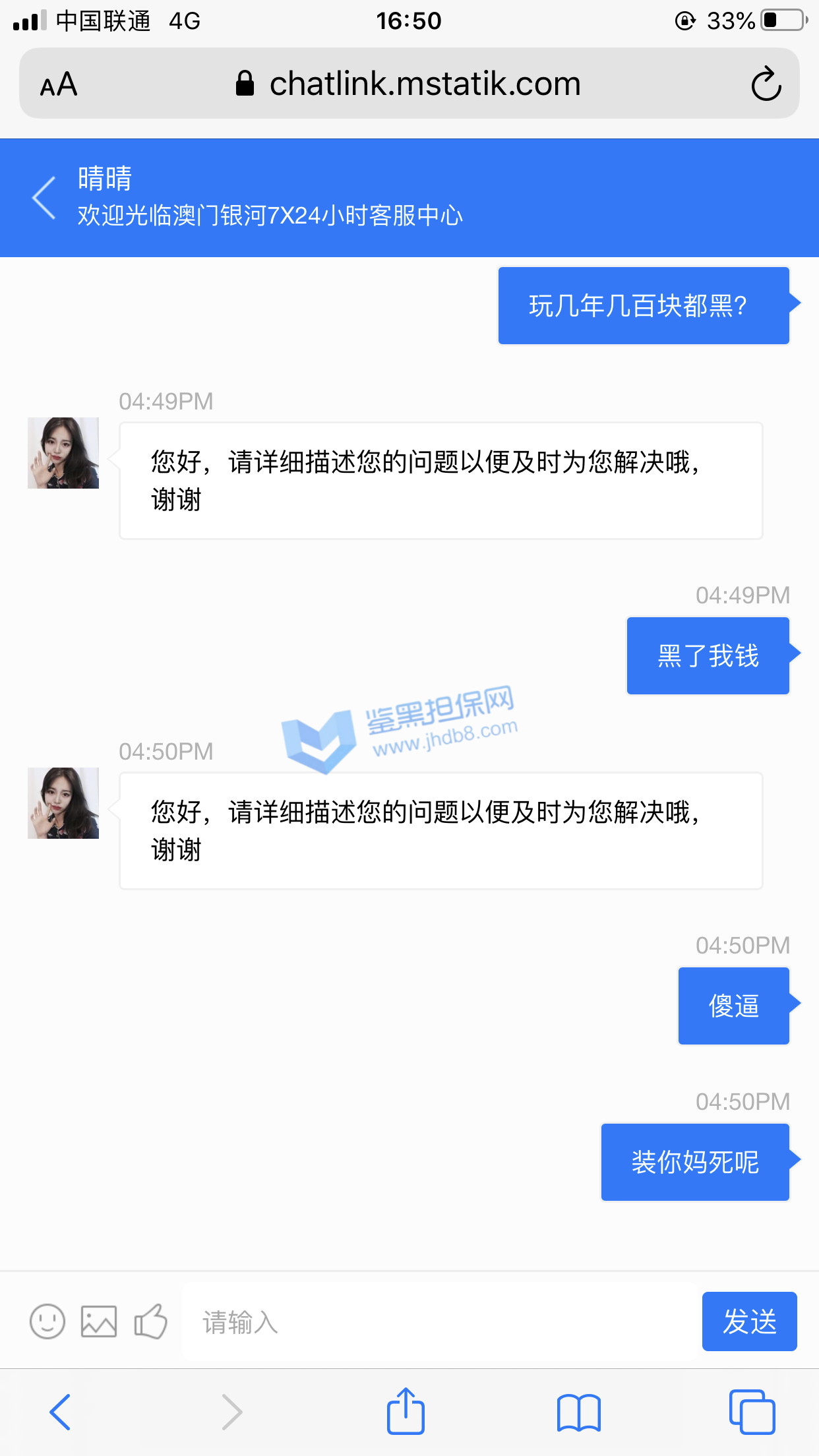4.用户提交维权需为本人提交,若代替让人发布维权鉴黑担保网将拒绝受理;
