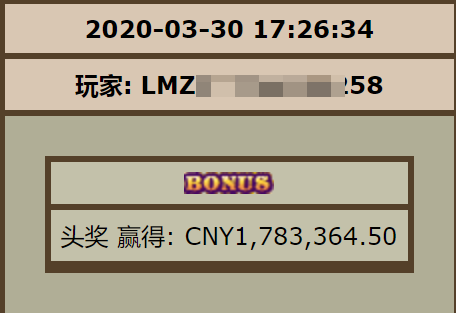 喜中PT《印加头奖》1,783,364.50元头奖